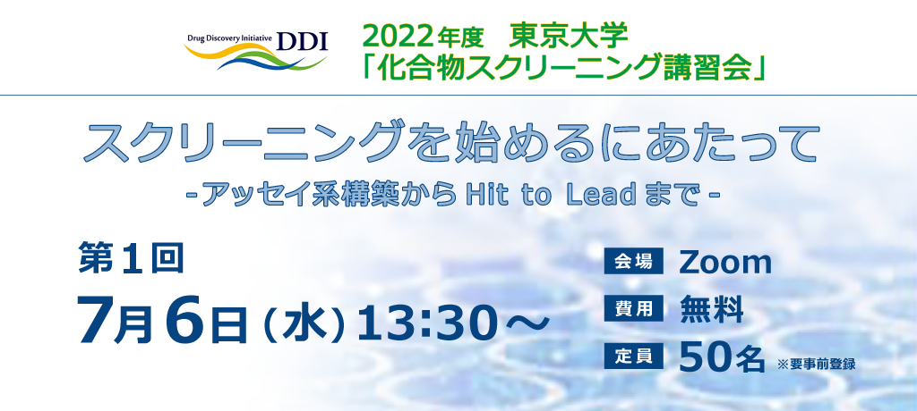 東京大学の創薬機構主催『化合物スクリーニング講習会 (Web)』のお知らせ